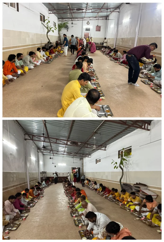 Food is prepared with devotion and served as prasad, ensuring dignity and respect for all.